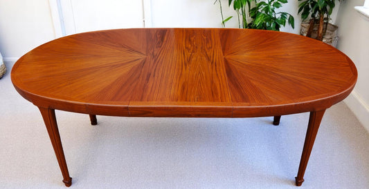 REFINISHED Mid Century Modern Sunburst Teak Table Oval w 1 Leaf 66"-87"