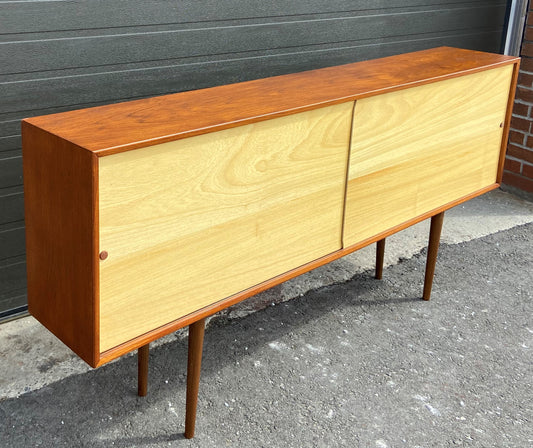 REFINISHED Mid Century Modern Teak & Birch Cabinet Narrow, 70.75"