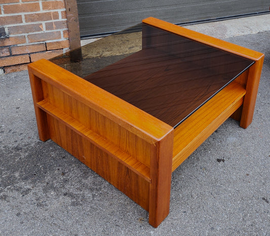 REFINISHED Mid Century Modern Teak & Glass Coffee Table with Storage
