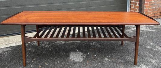 REFINISHED Mid Century Modern Sufboard Teak Coffee Table w Shelf 60", Perfect