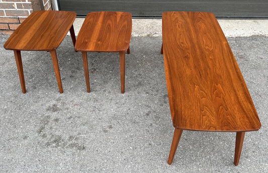 REFINISHED Mid Century Modern Solid Walnut Coffee Table & 2 End Tables