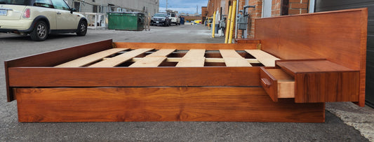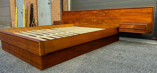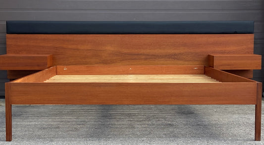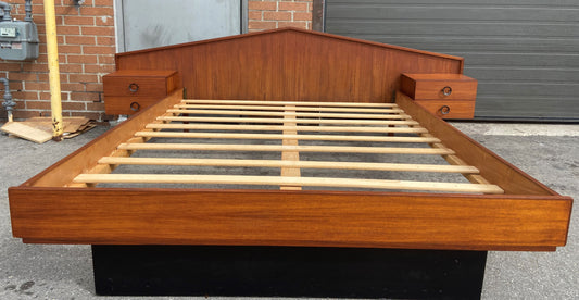 REFINISHED Mid Century Modern Teak Bed w floating nightstands Queen, PERFECT