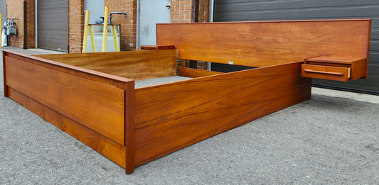 REFINISHED Mid Century Modern Teak Bed King w Floating Nightstands