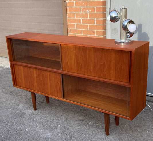 REFINISHED Mid Century Modern Teak Bookcase 60" w interchangable doors, Perfect