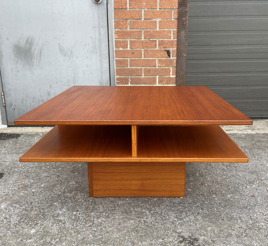 REFINISHED Mid Century Modern Teak Coffee Table Square 2 Tier, Perfect