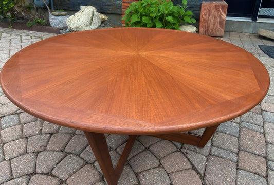 REFINISHED Mid Century Modern Teak Coffee Table Round Sunburst D 39"