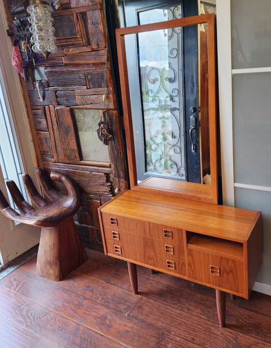 REFINISHED Mid Century Modern Teak Cabinet with Drawers & Mirror