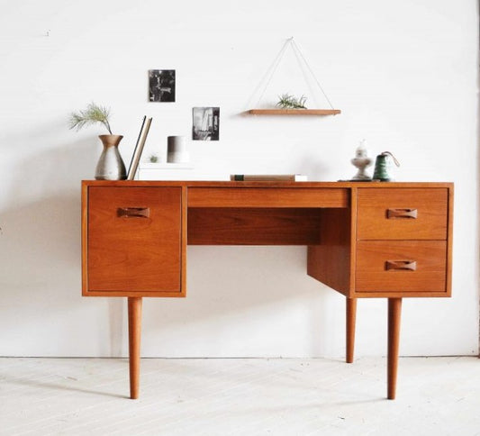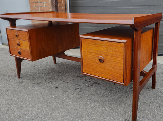 REFINISHED Mid Century Modern Teak Desk with Finished Back