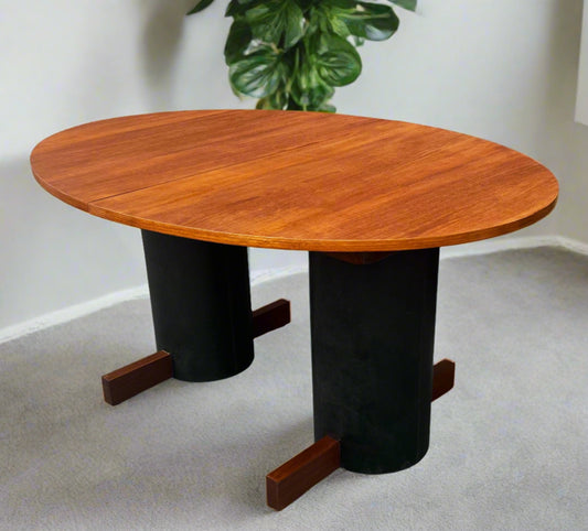 REFINISHED Mid Century Modern Teak Dining Table Round w 2 Leaves 49"- 91"