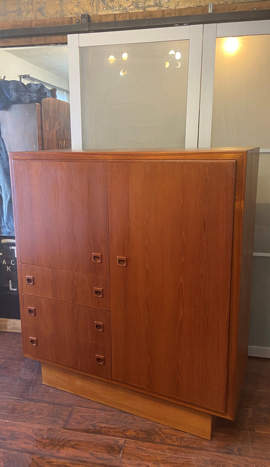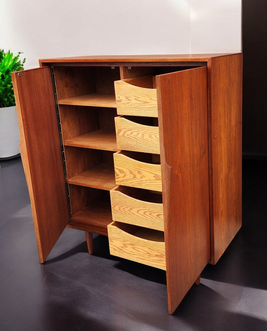 REFINISHED Mid Century Modern Teak Compact Wardrobe or Tall Dresser
