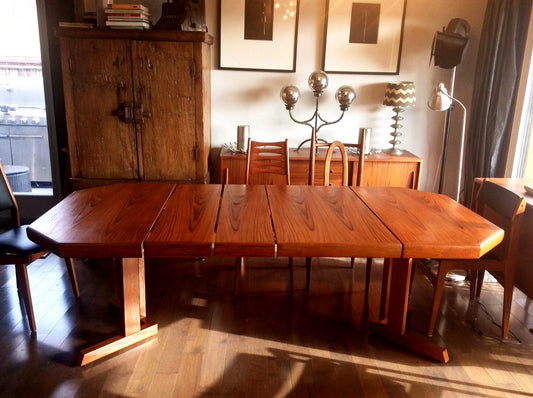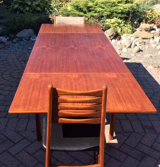 REFINISHED Mid Century Modern Teak Dining Table Extendable with 2 Leaves / Draw Leaf/ Pocket Leaf made in Denmark