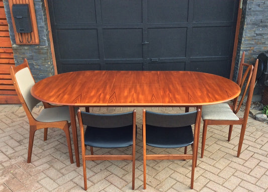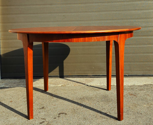 REFINISHED Mid Century Modern Teak Dining Table Oval Extendable Self Storing (with butterfly/ jackknife/ pop up leaf)