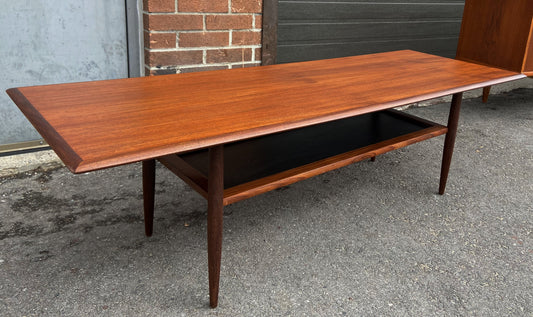 REFINISHED Mid Century Modern Teak Coffee Table with Shelf by RS Associates 6ft
