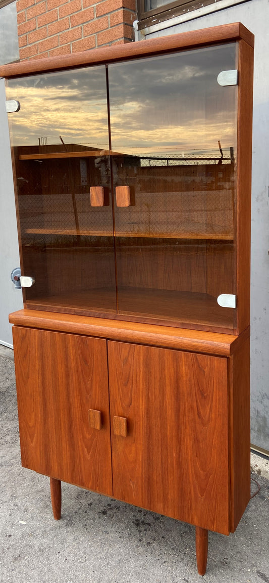 REFINISHED Mid Century Modern Teak Corner Cabinet w Lighting (2 parts), Perfect