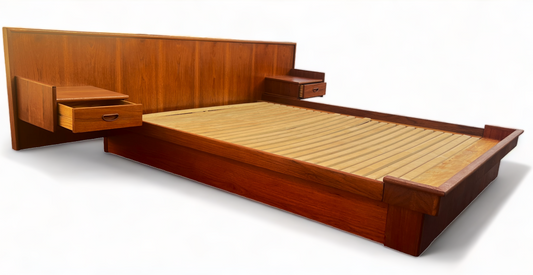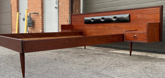 REFINISHED Mid Century Modern Teak Platform Bed w floating nightstands Double
