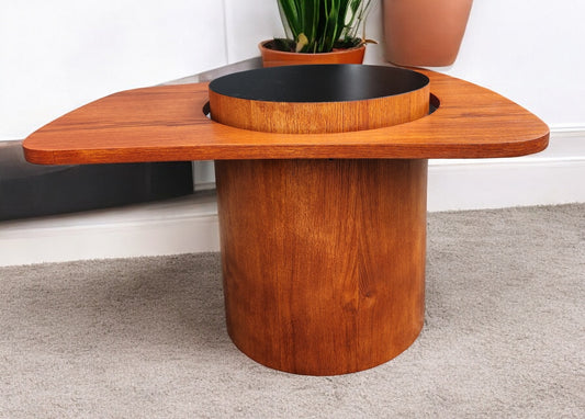 REFINISHED Mid Century Modern Teak Lunar Side Table / Bar by RS Associates