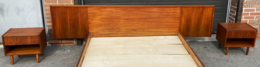 REFINISHED Mid Century Modern Teak Queen Bed w 2 Nightstands
