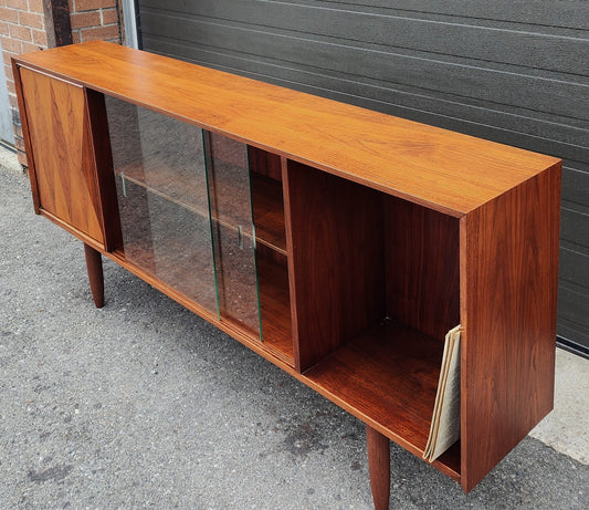 REFINISHED Mid Century Modern Walnut Display/ Bookcase/ Media TV Console 71"