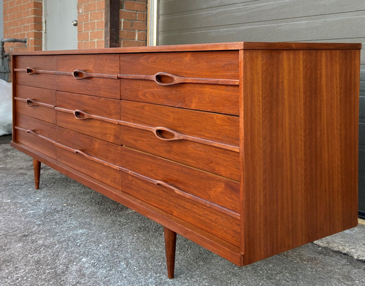 REFINISHED Mid Century Modern Walnut Dresser 9 drawers 84"