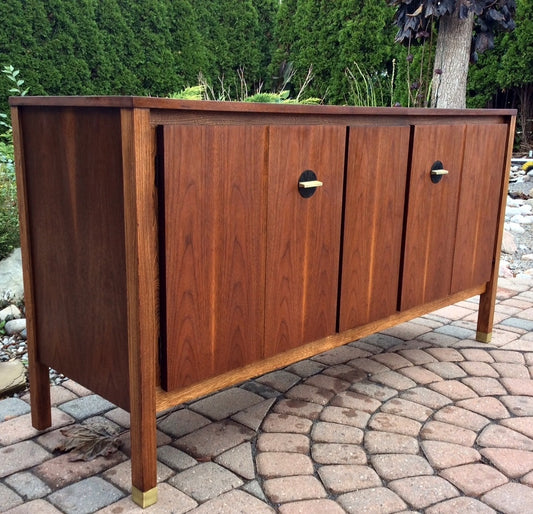 REFINISHED Mid Century Modern Walnut Sideboard Buffet TV Media Records Console