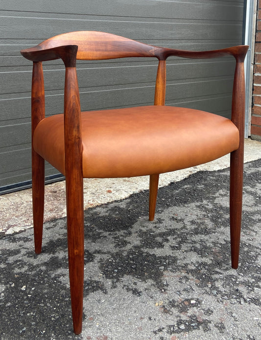 REFINISHED REUPHOLSTERED in Leather Danish Mid Century Modern Teak Armchair