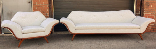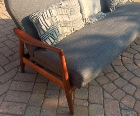 REFINISHED REUPHOLSTERED MCM Walnut Sofa & 2 Lounge Chairs Grey (buy all set or separately)