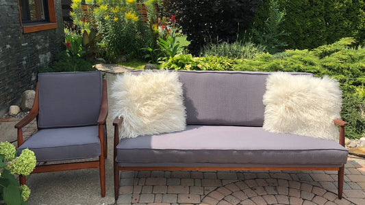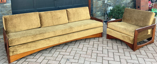 REFINISHED REUPHOLSTERED MCM Teak 4-Seater Sofa & Armchair in Wool Mohair - PERFECT