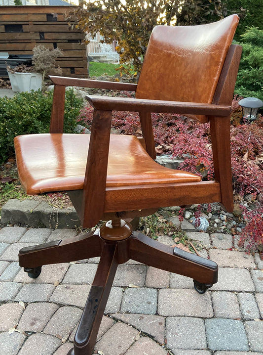 REFINISHED REUPHOLSTERED MCM walnut desk chair adjustable by Krug, Perfect
