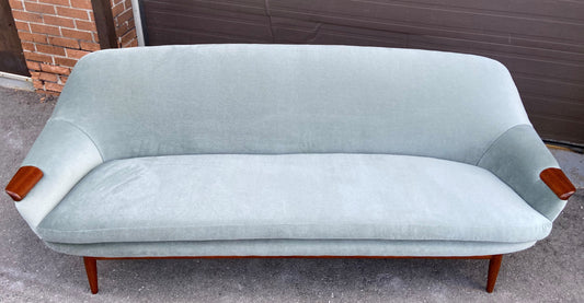 REFINISHED REUPHOLSTERED in wool mohair MCM Teak Sofa by Gerhard Berg, PERFECT