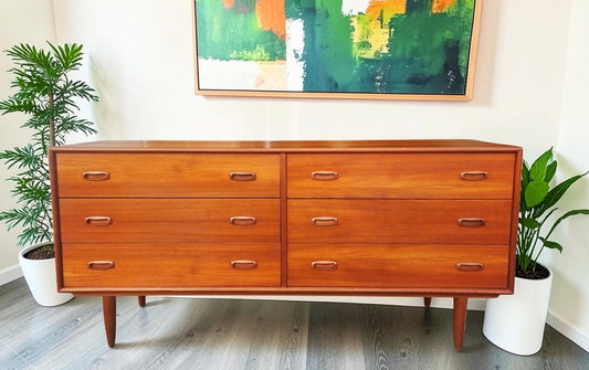 REFINISHED Mid Century Modern Teak Dresser w 6 Drawers