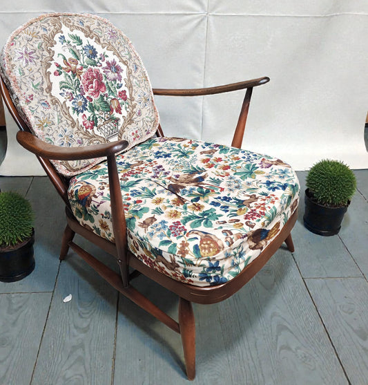 RESTORED Mid Century Modern Elm Armchair by Ercol, fleur-de-lis