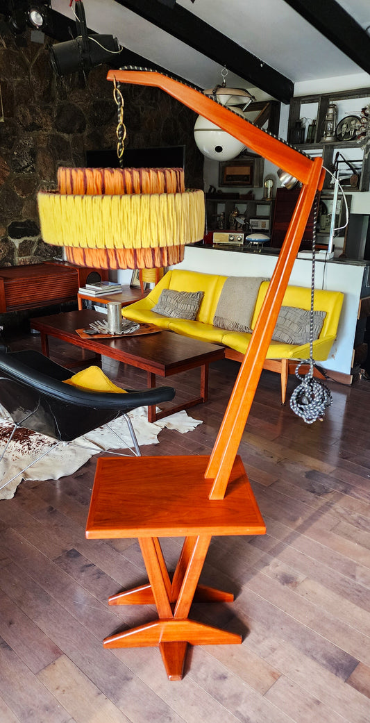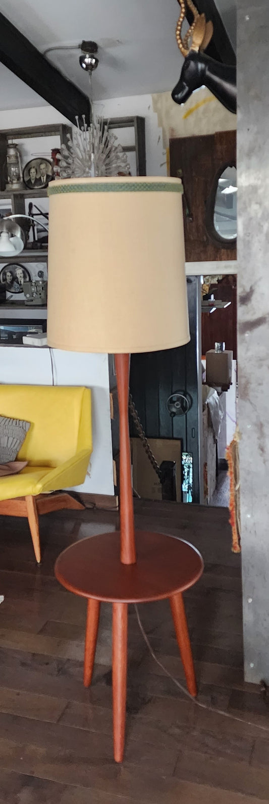 REFINISHED Mid Century Modern Teak Floor Lamp with Built in Table