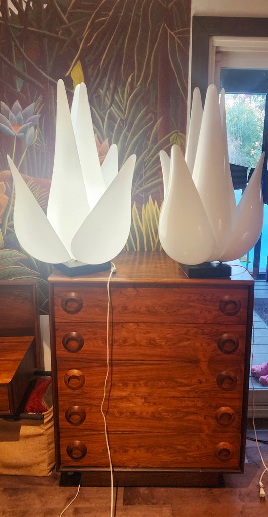 Mid Century Modern Large Sculptural Acrylic Tulip Lamps by R.Rougier