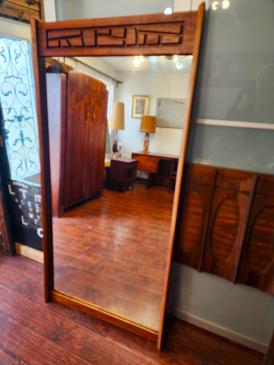 REFINISHED Mid Century Modern Brutalist Solid Walnut Mirror Large