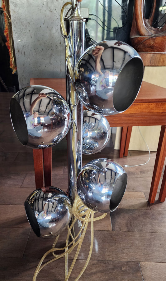 Mid Century Modern Chrome and Glass 6 Eyeballs Ceiling Chandelier Lamp