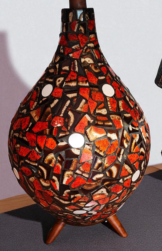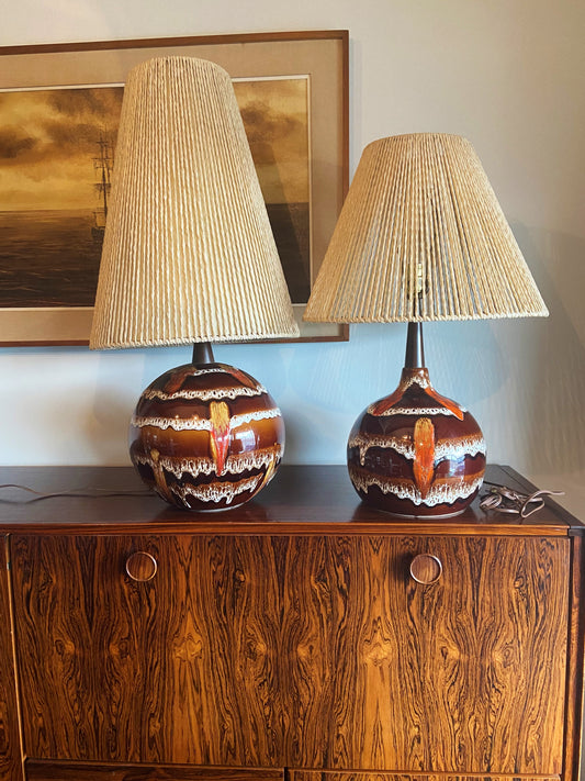 Mid Century Modern Walnut & Pottery Lamp H 32.5"