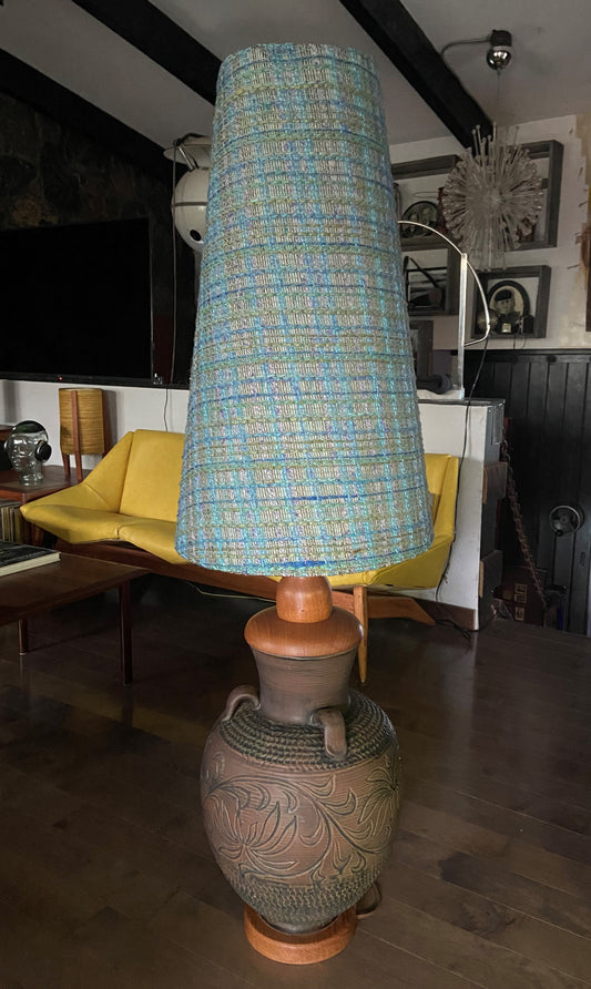 Large Mid Century Modern Floor Pottery Lamp, H 60" (including shade)