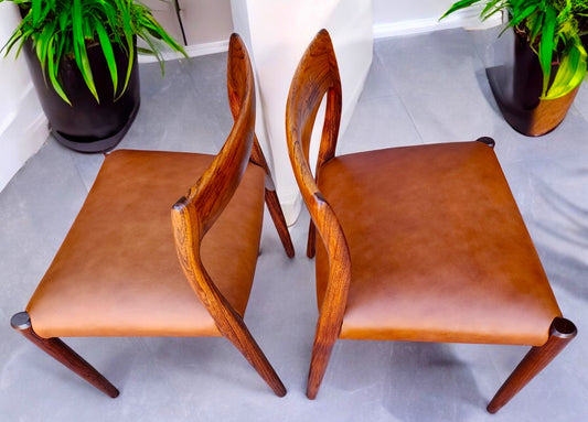 4 Danish MCM Rosewood & Leather Chairs by N.Moller #77