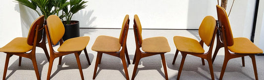 6 RESTORED Danish Mid Century Modern Teak Dining Chairs by Niels Kofoed, model Eva