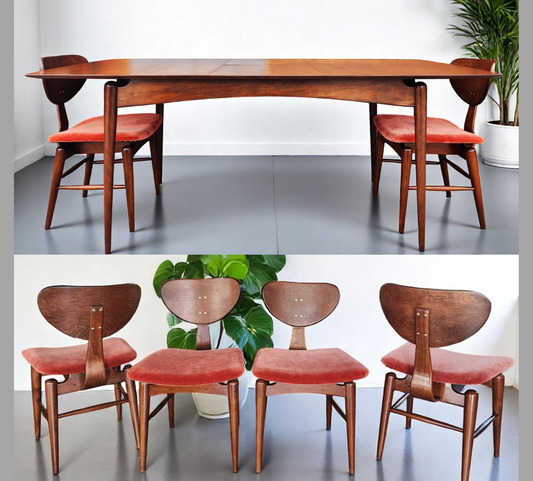 REFINISHED MCM Russell Spanner Dining Table & 6 REUPHOLSTERED Chairs