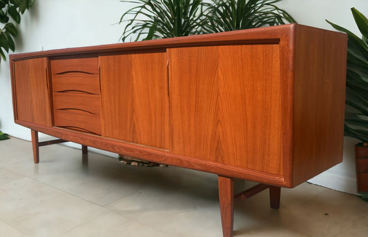 REFINISHED Danish Mid Century Modern Teak Sideboard by Gunni Omann for ACO, 95"