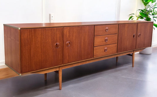 REFINISHED Dutch Mid Century Modern Teak Sideboard by W.Watting for Fristho 96.5"