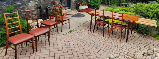 Danish MCN draw leaf rosewood table by Johannes Andersen 63"-102" & 6 Lis chairs by Niels Kofoed