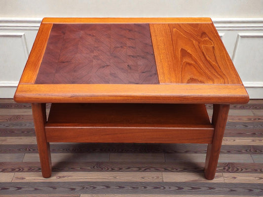 REFINISHED Danish Mid Century Modern Teak Accent Table w Inlay & Shelf