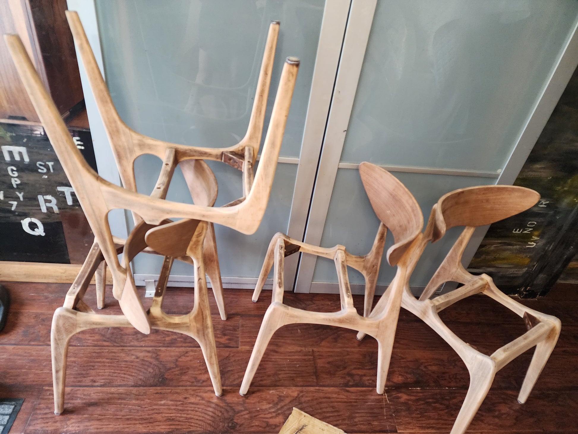 These famed Mid Century Modern Sculptural walnut & ash chairs by Deilcraft are probably the nicest and most desirable Canadian MCM dining chairs, and they are getting scarce.