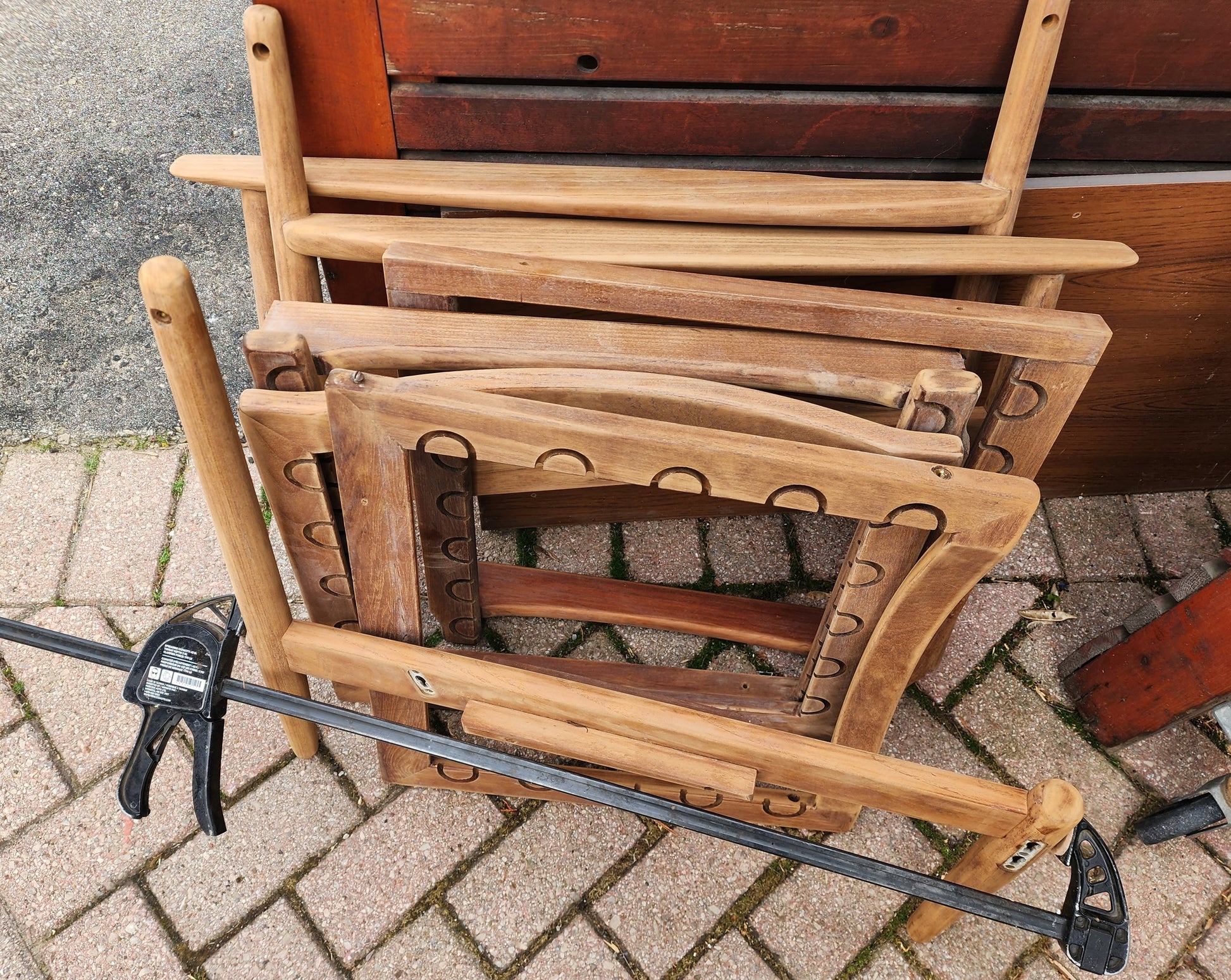 We dismantled the sofa, stripped, sanded, and refinished the frame with multiple layers of Danish oil, and it is just like new again.