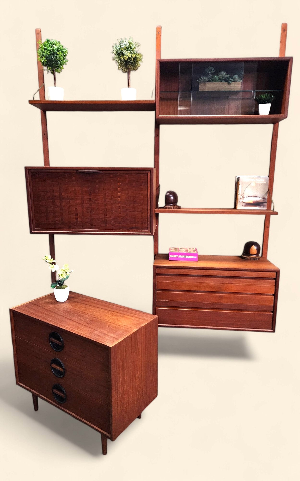 REFINISHED Danish MCM Teak Modular Wall Unit by Poul Cadovius for CADO