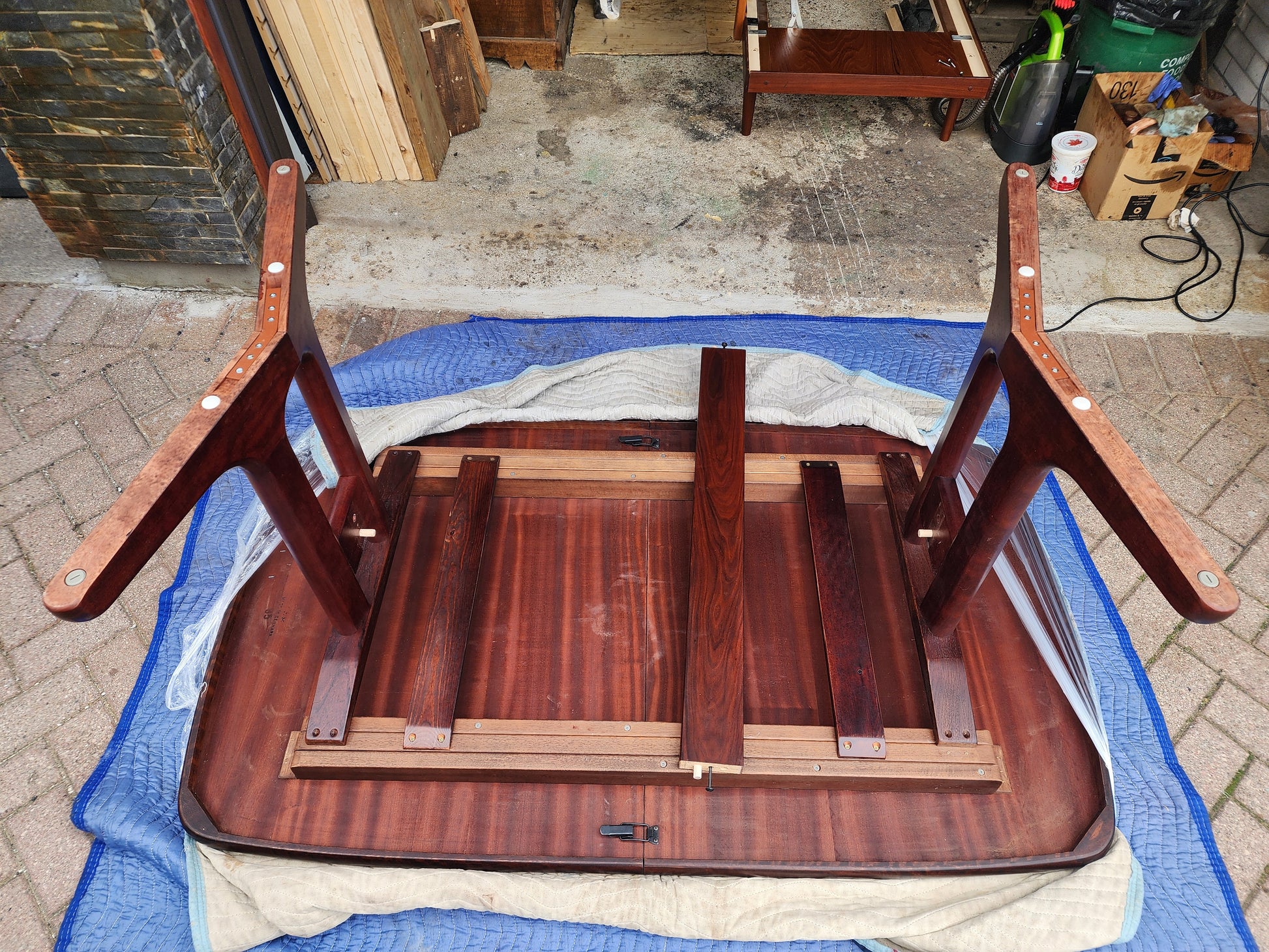 Trestle legs have been taken off and table is ready for transportation.