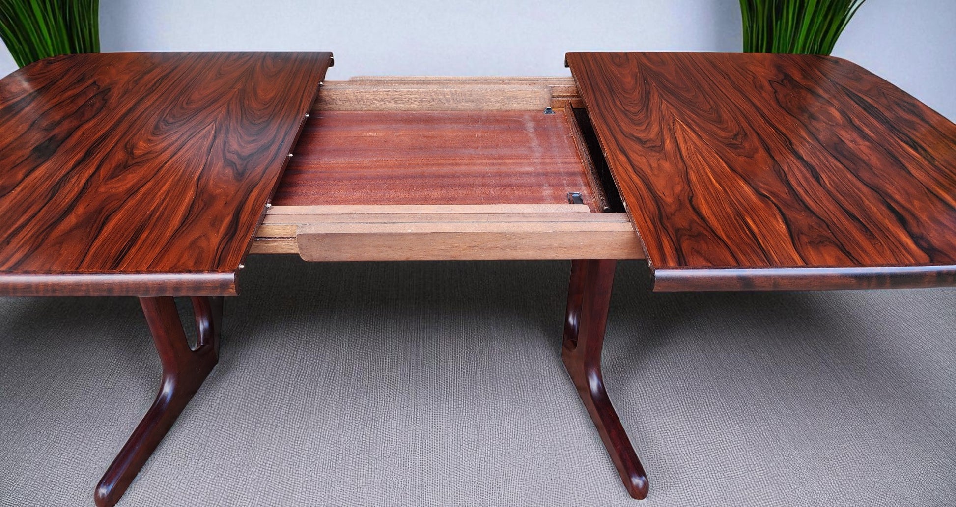 Danish Mid Century Modern Rosewood Table Self storing, 65"-104.5"