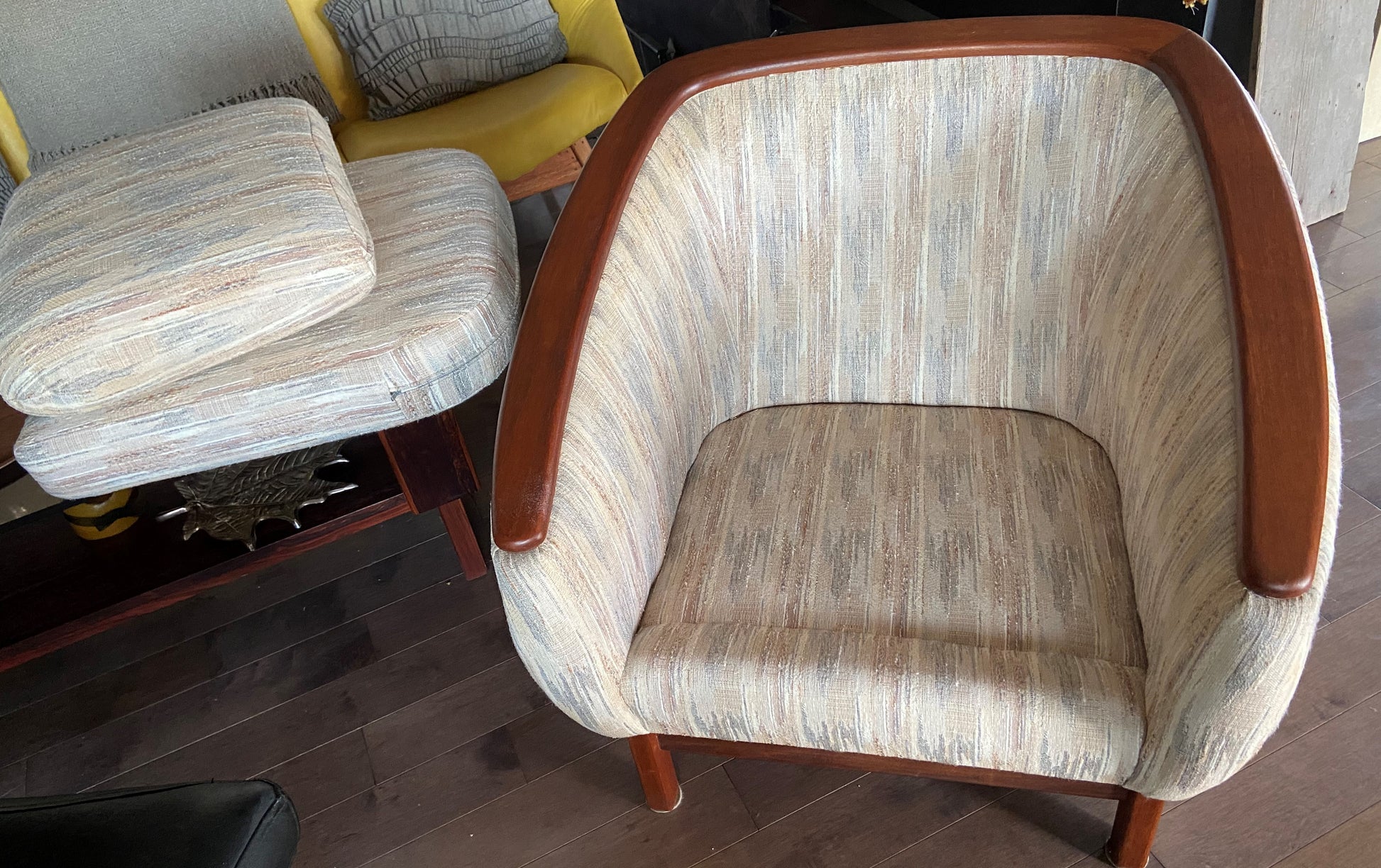 Deposit for REFINISHED MCM Huber Barrel Back Teak Lounge Armchair, PERFECT